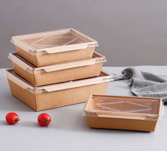 Màu sắc: Hộp kraft nâu tự nhiên, nắp trong suốt giúp dễ quan sát món ăn
