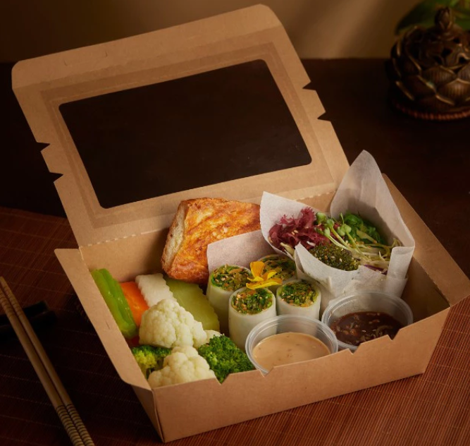 Nắp nhựa PET trong suốt có cửa sổ giúp nhìn rõ món ăn bên trong, tăng tính thẩm mỹ khi phục vụ