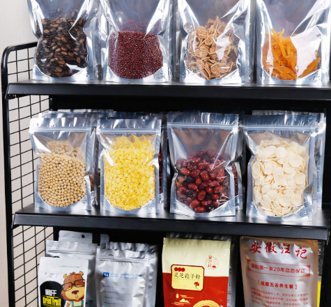Túi zip đáy đứng giúp dễ dàng trưng bày thực phẩm.