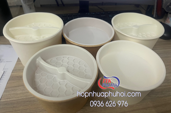 Tô giấy 2 tầng thường dùng để đựng bún, phở, miến, những món cần dùng hộp chia ngăn để đựng các món ăn phụ, …