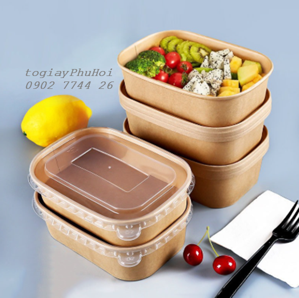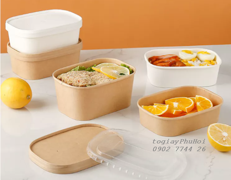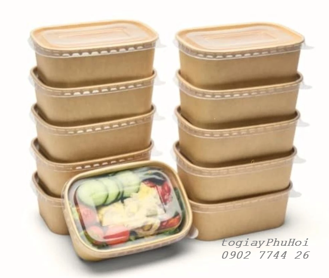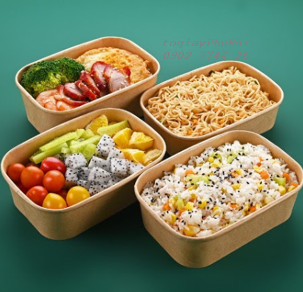 Tô giấy kraft 750ml chữ nhật là sản phẩm bao bì thực phẩm đang được nhiều nhà hàng, quán ăn, cửa hàng giao đồ ăn nhanh lựa chọn nhờ vào sự tiện dụng, an toàn và tính thẩm mỹ cao. Với thiết kế hình chữ nhật gọn gàng, dung tích 750ml phù hợp đựng cơm, bún, phở, salad và các món ăn nóng hoặc nguội, sản phẩm này là giải pháp hoàn hảo cho mọi nhu cầu đóng gói thực phẩm hiện đại.